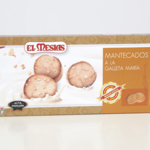 Est. 100g Precio: 1.10€/unid. ¿Qué os parece la idea de fusionar el sabor de la auténtica Galleta María con los Mantecados? Prueba ese bocadito irresistible. Ingredientes: HARINA DE TRIGO, grasa de cerdo (extracto natural de romero y ácido cítrico), azúcar, galleta maría 9% (LECHE, SULFITO, HUEVO), margarina (LECHE), canela, aroma galleta y jarabe de glucosa.