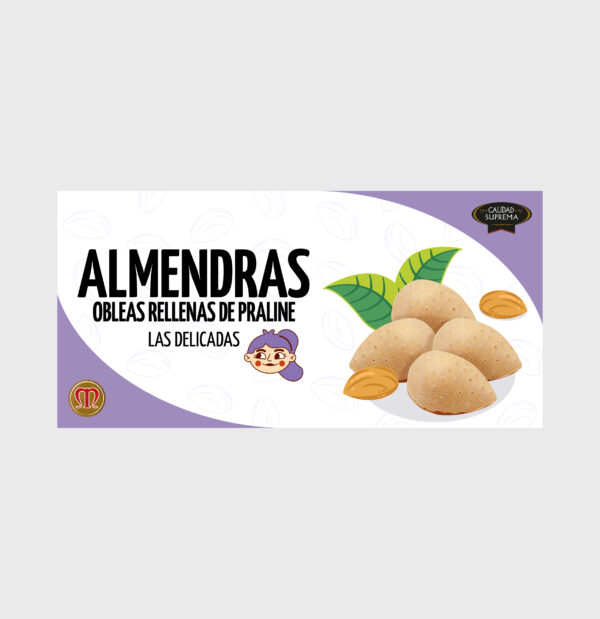 Ingredientes: HARINA DE TRIGO, azúcar, grasa vegetal, ALMENDRA (10%), OBLEA (HARINA DE TRIGO, emulgente: LECITINA DE SOJA, almidón de maíz, fibra vegetal, cacao, estabilizante: bicarbonato sódico, sal), canela y esencia de turrón. Puede contener trazas de huevo, cacahuete, leche, otros frutos de cáscara, sésamo, sulfitos y mostaza. Consérvese en lugar fresco y seco.