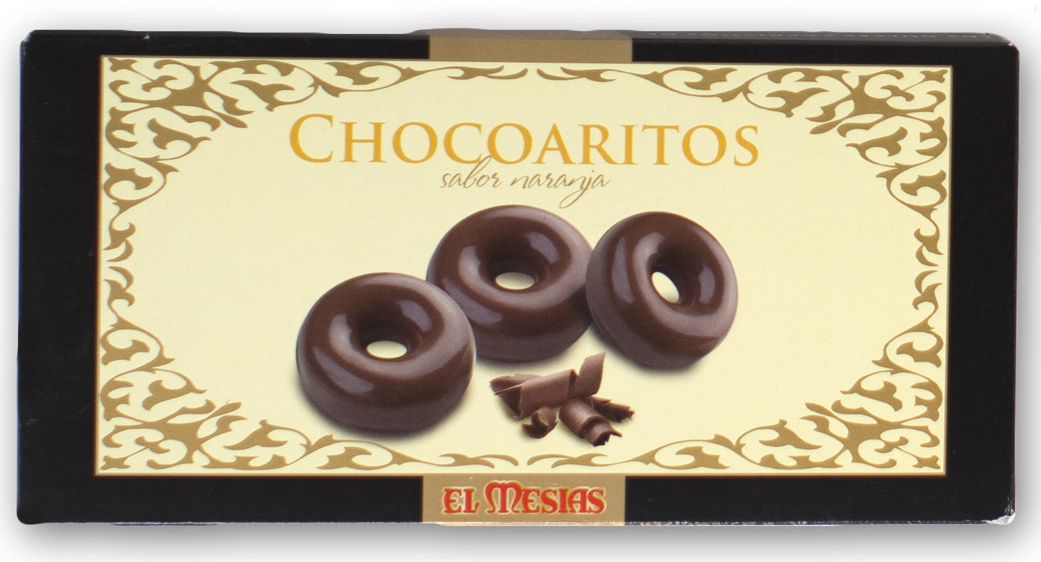 Ingredientes: HARINA DE TRIGO, grasa cerdo (extracto romero y ac. Cítrico), azúcar, cobertura de chocolate (15%) (azúcar, grasa vegetal de palmiste, LACTOSUERO en polvo, cacao en polvo desgrasado, emulgente: LECTINA DE SOJA y aroma), canela y aroma a naranja. Puede contener trazas de huevo, cacahuete, soja, leche frutos de cáscara y sulfitos. Consérvese en lugar fresco y seco.