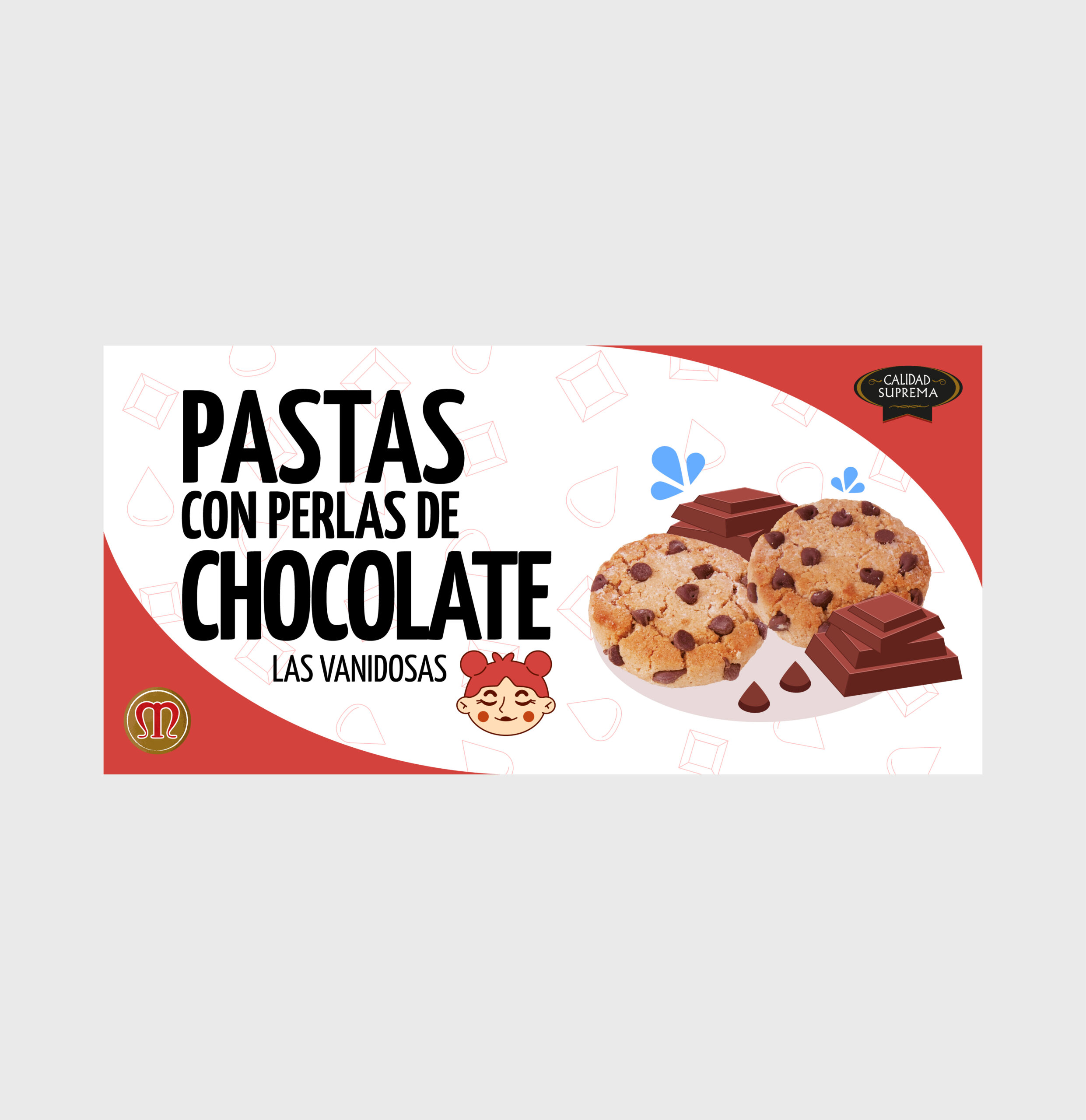 Ingredientes: HARINA DE TRIGO, grasa vegetal de palma, azúcar, perlas de chocolate (10%) (Pasta de cacao, azúcar, maltitol, dextrosa, manteca de cacao, cacao desgrasado en polvo, emulgente (lecitina de girasol y E-476) y aroma), HUEVO y canela. Puede contener trazas de cacahuetes, soja, leche, frutos de cáscara, sésamo, sulfitos y mostaza. Consérvese en lugar fresco y seco.
