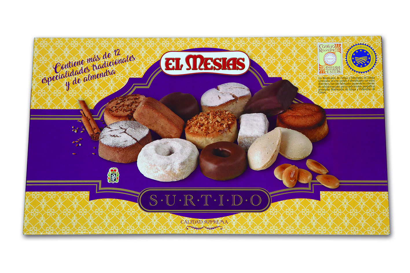 Contenido: El SURTIDO CLÁSICO de la Navidad, con productos de 12 especialidades. Mantecado de Estepa de Canela, Mantecado de Estepa de Limón, Mantecado de Estepa de cacao, Mantecado de Estepa de almendra, Polvorón de Estepa de Almendra (9%), Rosco de vino, Mantecado bombón, Polvorón bombón, Chocoarito, Primorosa de almendra, Almendrado crujiente y Almendra de oblea rellena.