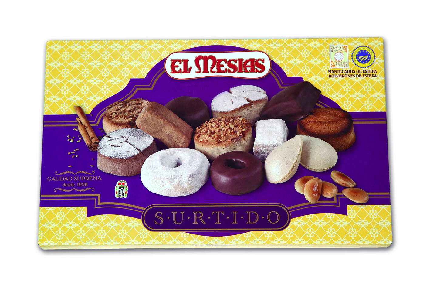Contenido: Mantecado de Estepa de Canela, Mantecado de Estepa de Almendra, Mantecado de Estepa de limón, Mantecado de Estepa de cacao, Polvorón de Estepa de Almendra (9%) y Rosco de Vino.